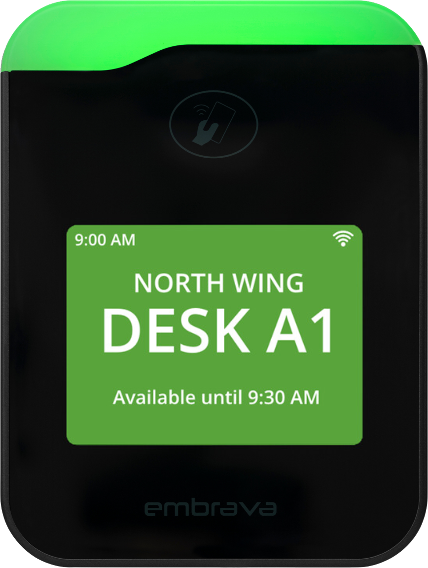 Desk Sign Embrava UK. With its eye-catching display, you can easily communicate messages or display directions in a. Embrava's open and extensible API allows Desk Sign to seamlessly integrate into any in-house booking platform or line of business applications